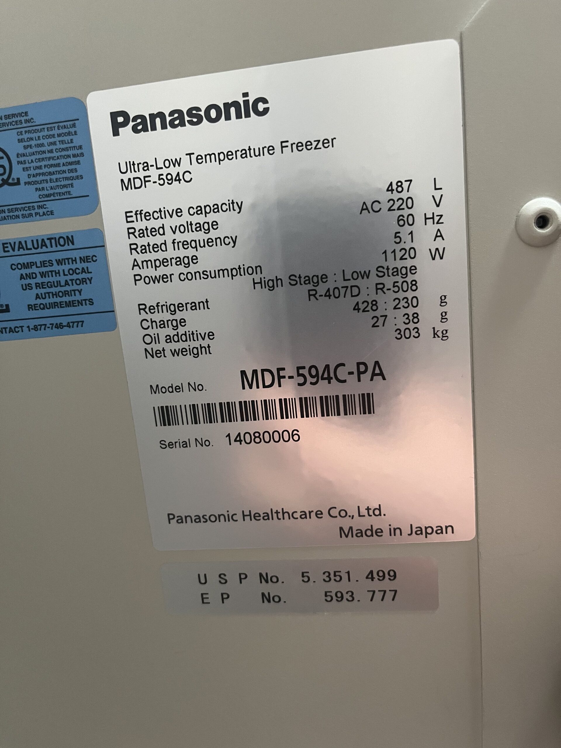 - Temp Range: -20 to -86C